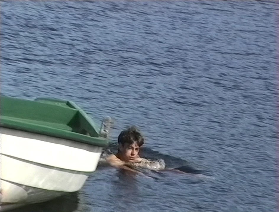 Graham is first to swim around the boat in icy Jølstravatnet at Vassenden.