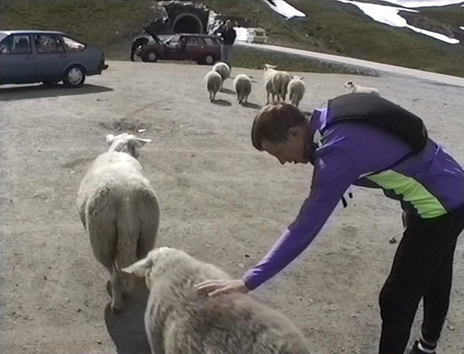 24.4 miles: Julian befriends sheep at Storeskrea, 922 m. Storehaug tunnel beyond.