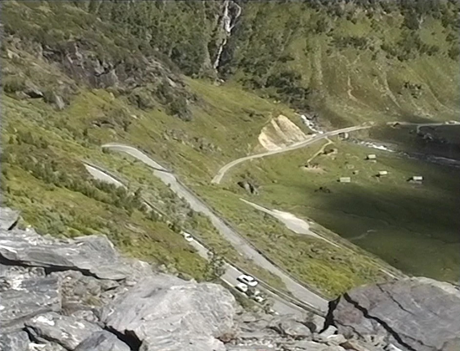 Multiple hairpins from the Myrkdalen viewpoint, 34.9 miles from Balestrand, 735 m.
