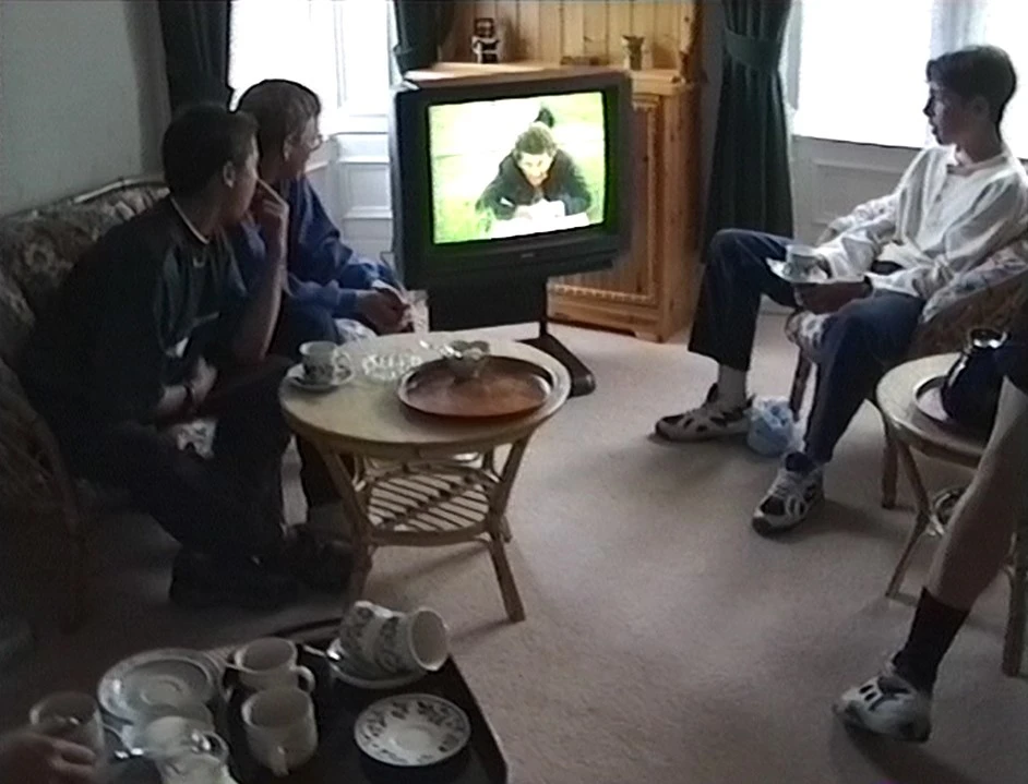 Relaxing with drinks in the TV lounge at Tower Guest House, Stornoway
