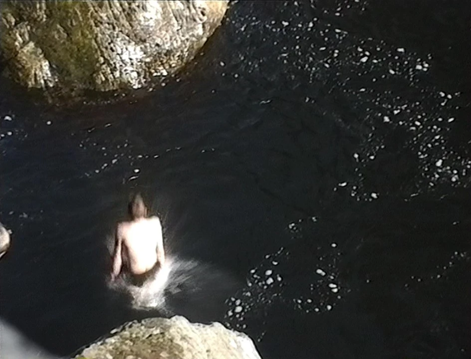Tom takes the plunge into the Llugwy at Pont-y-Pair, Betws-y-Coed.