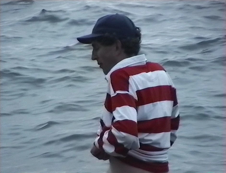 Michael has to wade into the surprisingly deep water to retrieve the frisbee that Ryan inadvertently threw there