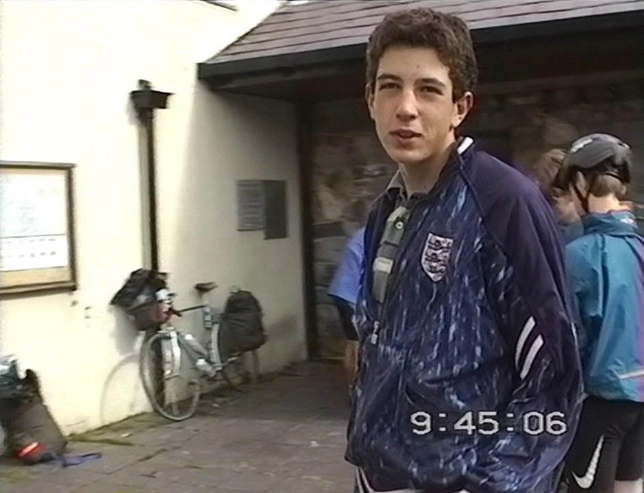 James outside Pen‑y‑Pass youth hostel, fretting over a missing item