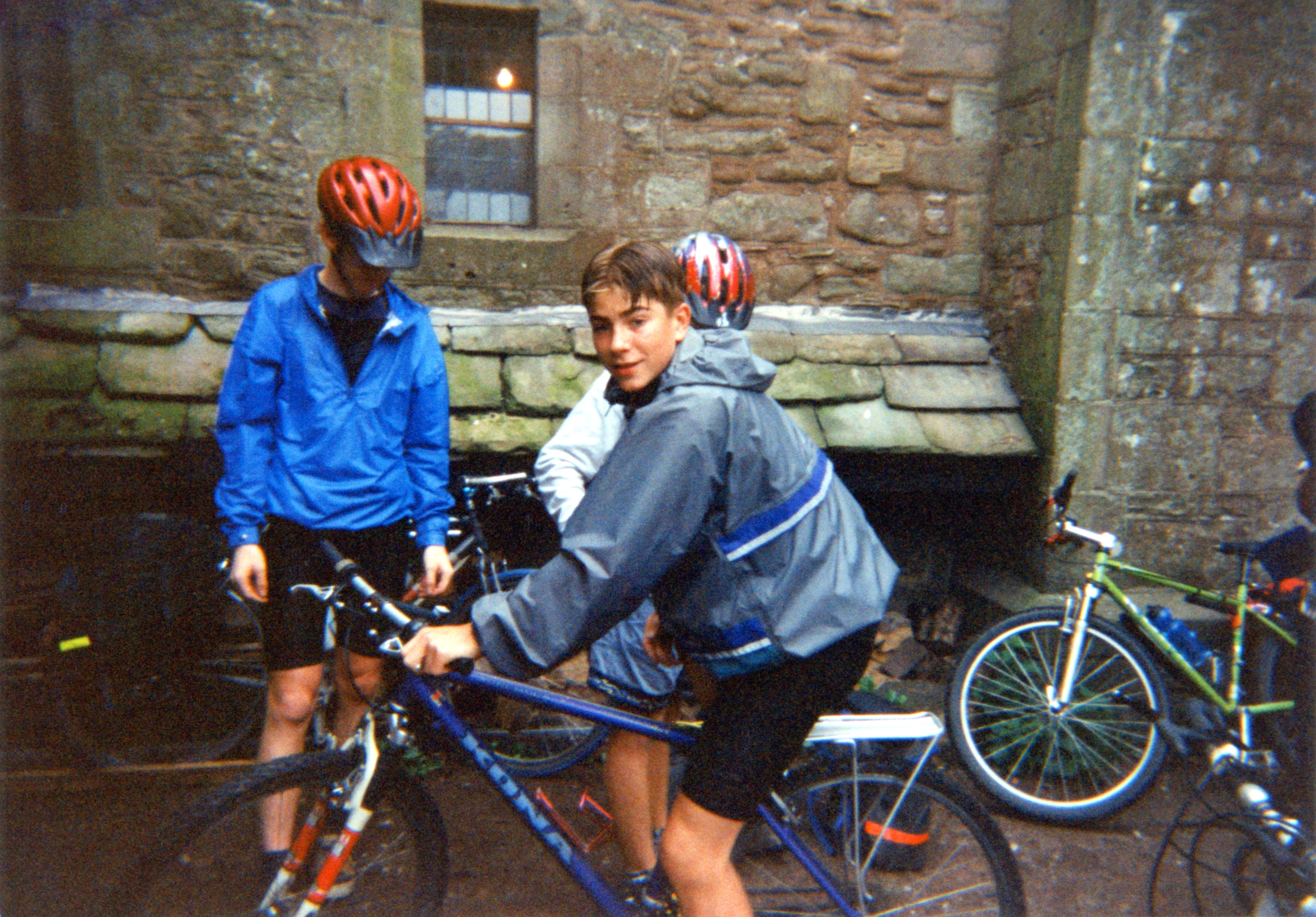 Oliver, Tom and Llewellyn outside St Briavels Castle.