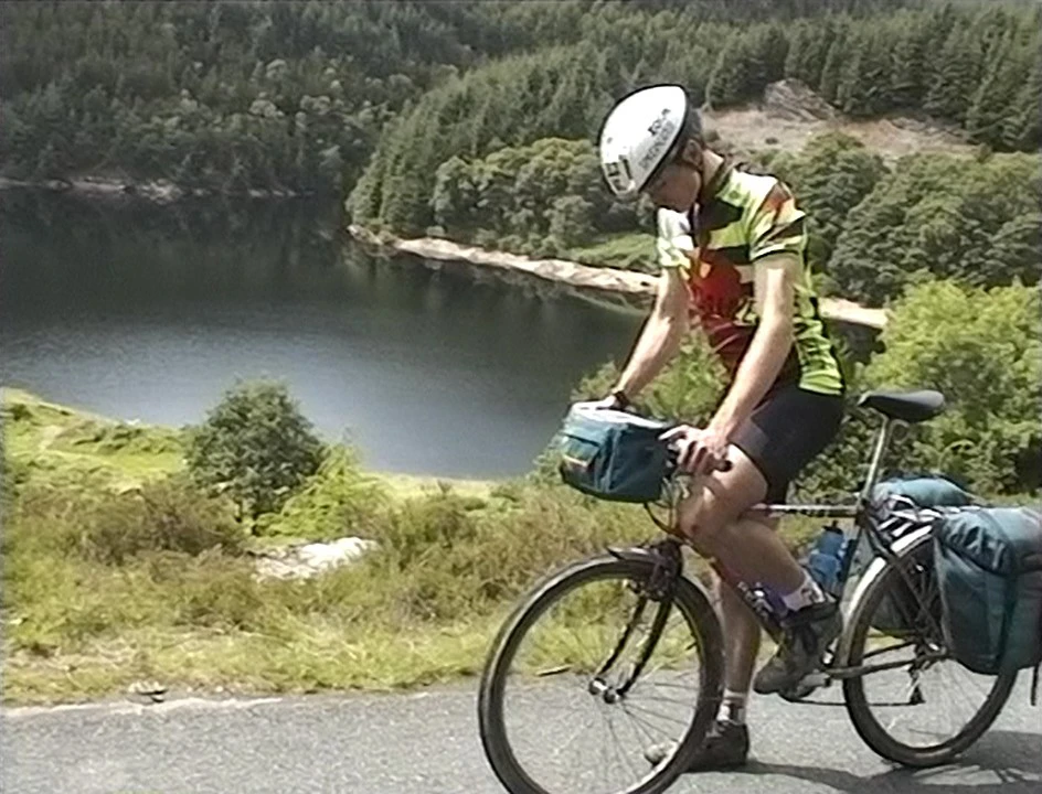 Tao rides around the enormous, picturesque Llyn Brianne reservoir.