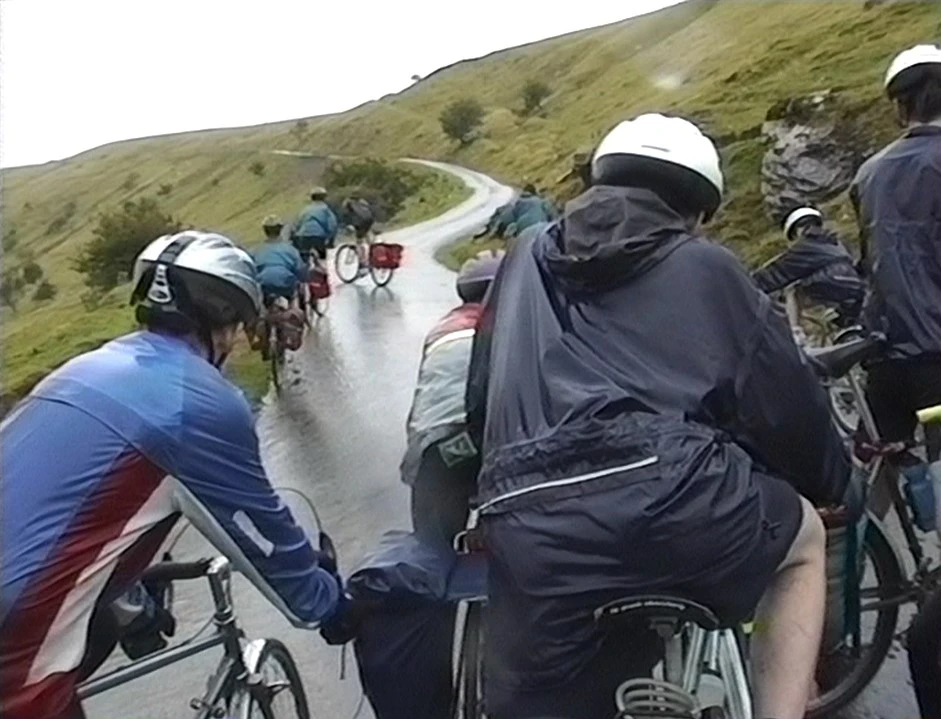 Continuing the climb to Devil's Elbow, with the under-14s leading the way - accompanied by James who is hoping for some kind of shop at Ystradfellte youth hostel!