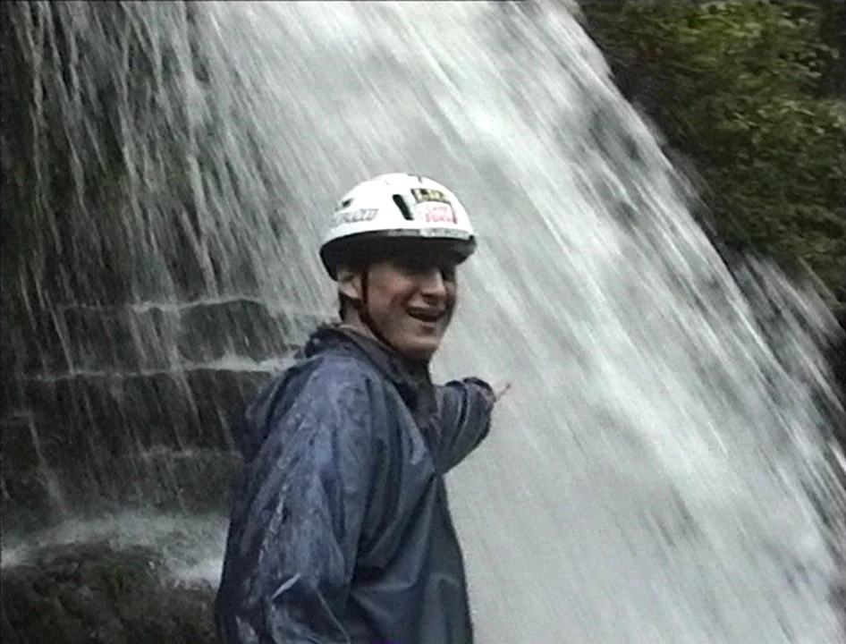 Tao gets up close and personal with the Falls of the White Meadow (Upper) on our evening walk along the River Mellte
