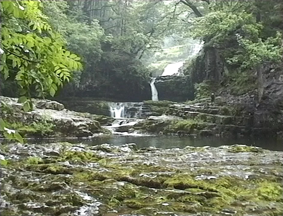 Looking back to the Falls of the White Meadow (Lower) on the River Mellte near Ystradfellte youth hostel