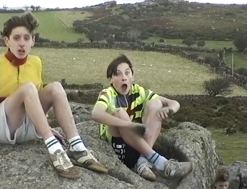 Paul Oakley and Tao Burgess try a rock seat near Mel Tor