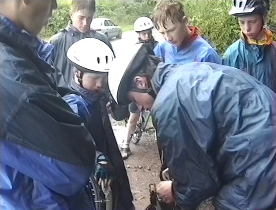 Tao repairs Alasdair’s chain at Tal-y-Coed Court, Llantilio Crosseny—19.7 miles in.