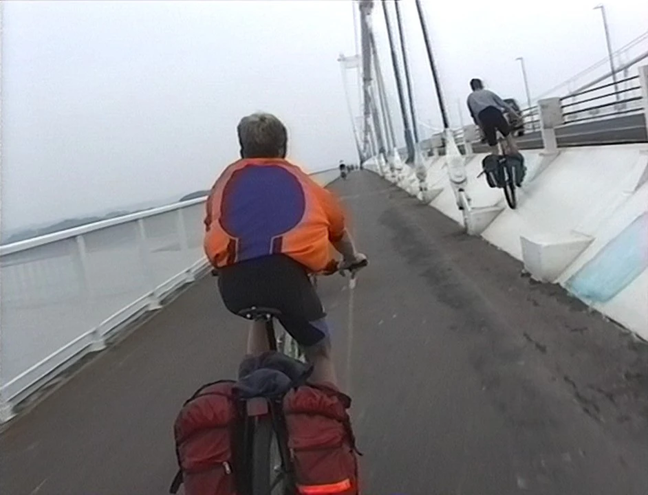 Riding the cycle path on the original Severn Bridge.
