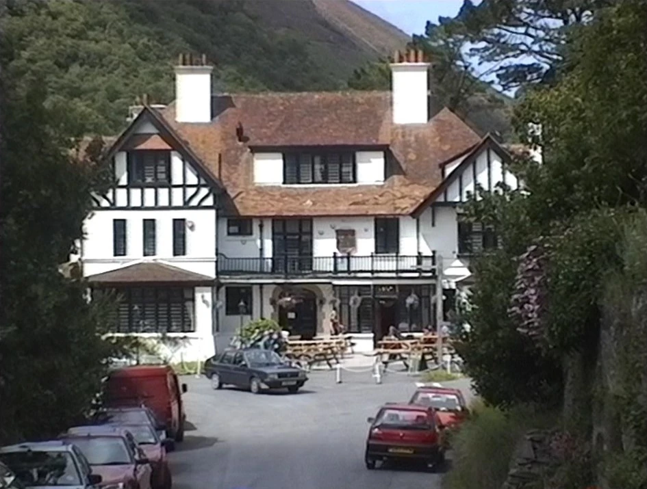 The Hunter's Inn, Trentishoe — the famous peacocks are hiding today.