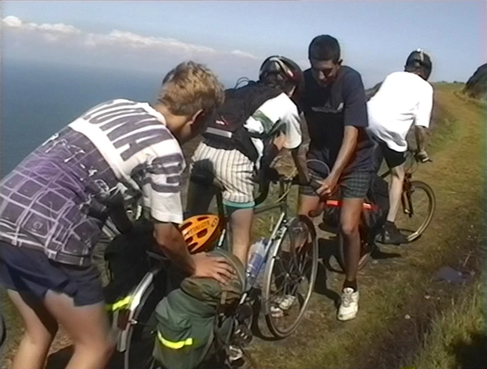 James and Ryan help Lee ride Ryan's Romany touring bike on the coast path.