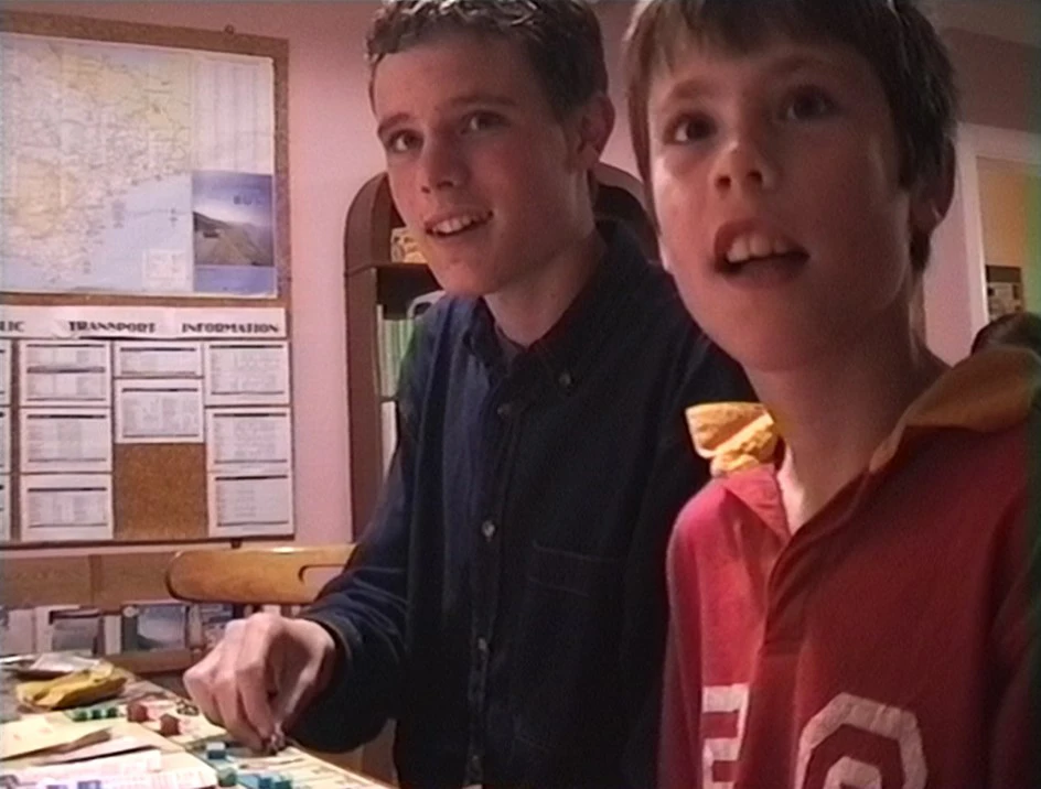 Lee and James play Monopoly with another hosteller at Lynton Youth Hostel after supper.