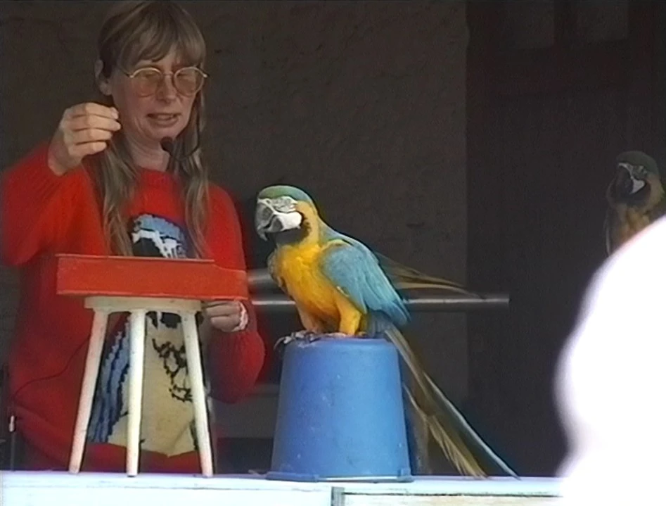 A musical parrot plays the piano at Combe Martin Wildlife and Dinosaur Park.