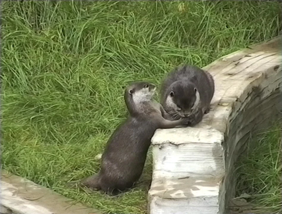 Eurasian otters at Combe Martin Wildlife and Dinosaur Park.