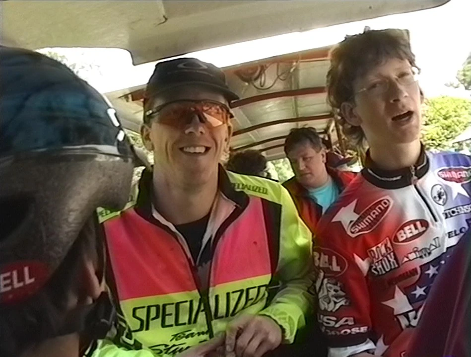 Julian and John on the Quake Train, riding towards uncertain destiny at Combe Martin Wildlife and Dinosaur Park.