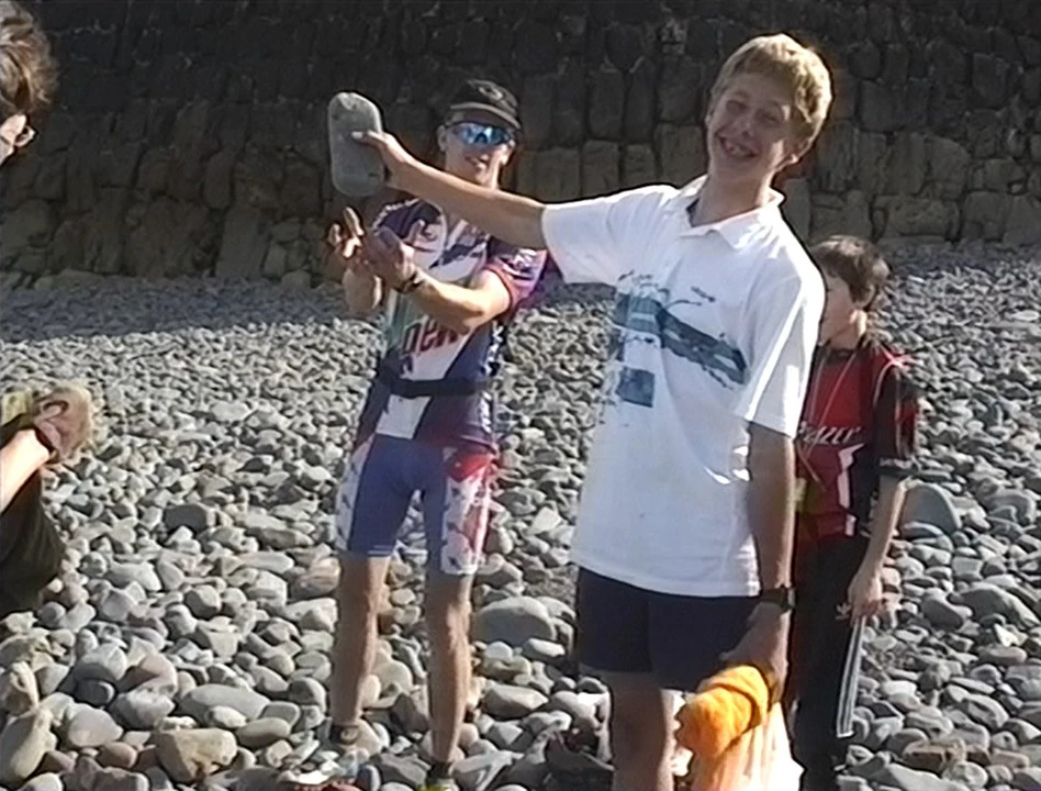 Ryan seeing how long he can keep a stone aloft on Clovelly Beach