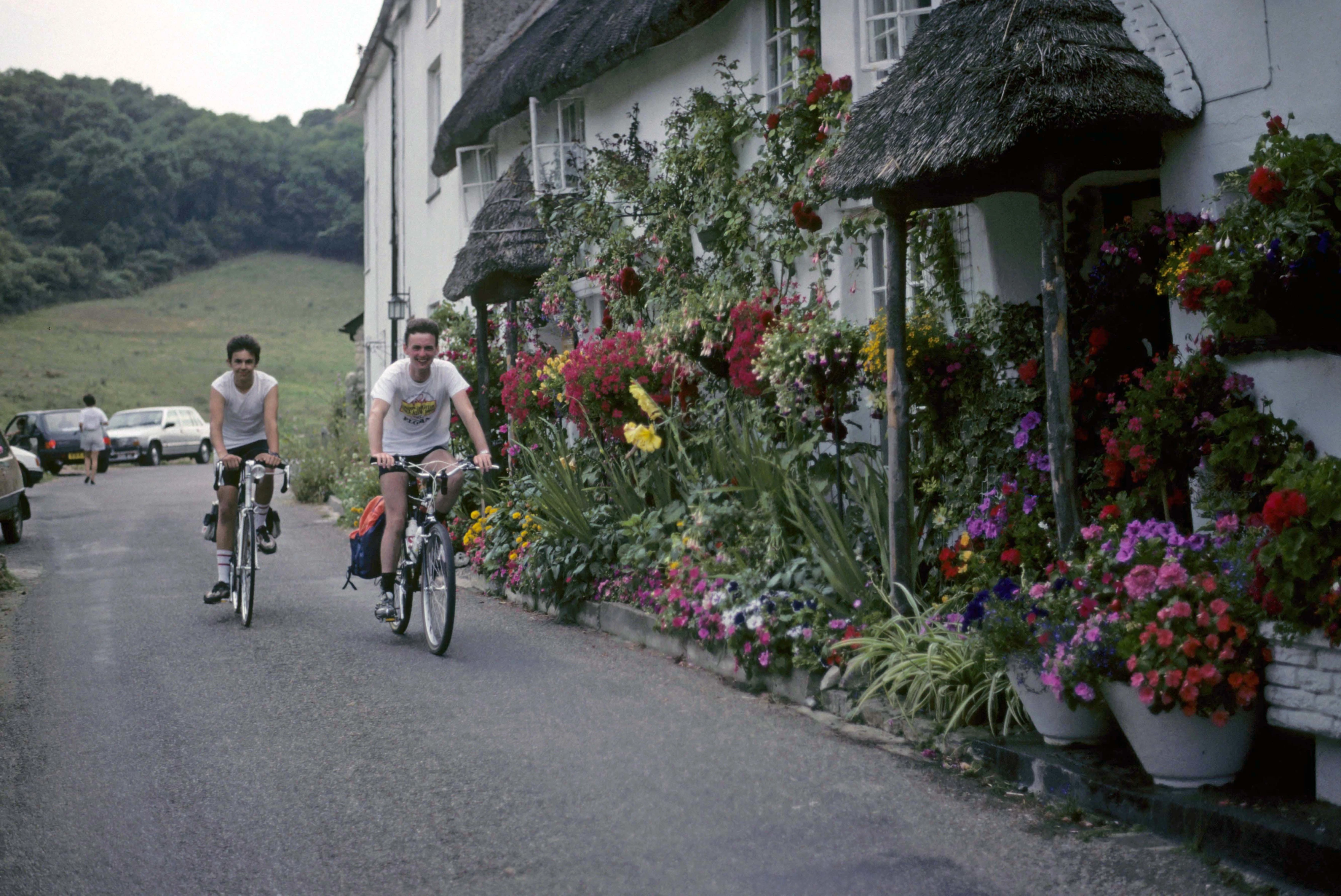 Martin Hills and John Stuart riding through Branscombe.