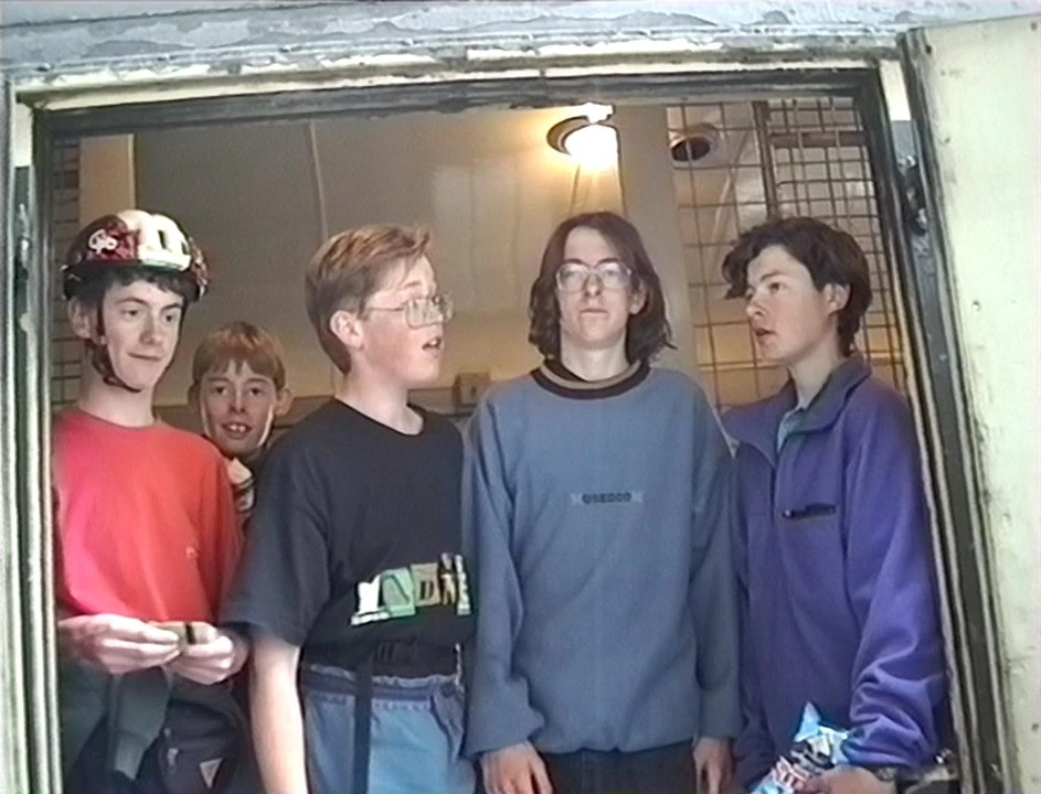 Richard Sudworth, Ben Collins and Matthew Pryer board the 11:10 for Wigan. Video still from surviving master footage.