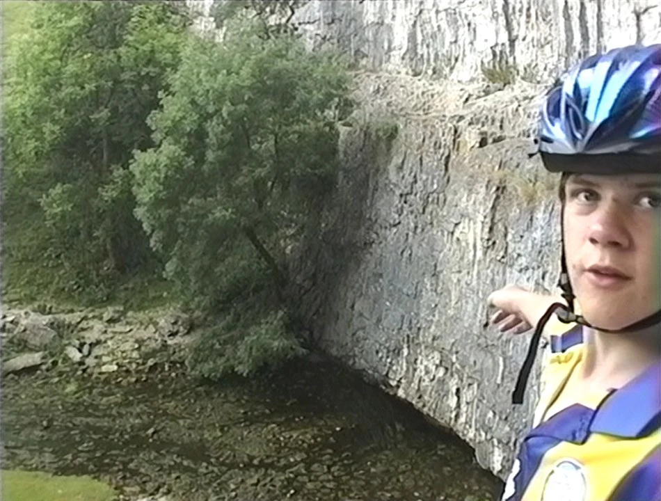 Gavin on the rock ledge at Malham Cove.