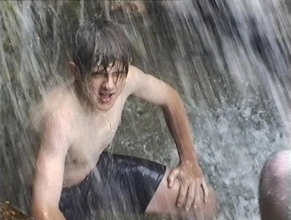 Gavin gets a thorough soaking in the Gordale Scar waterfall.