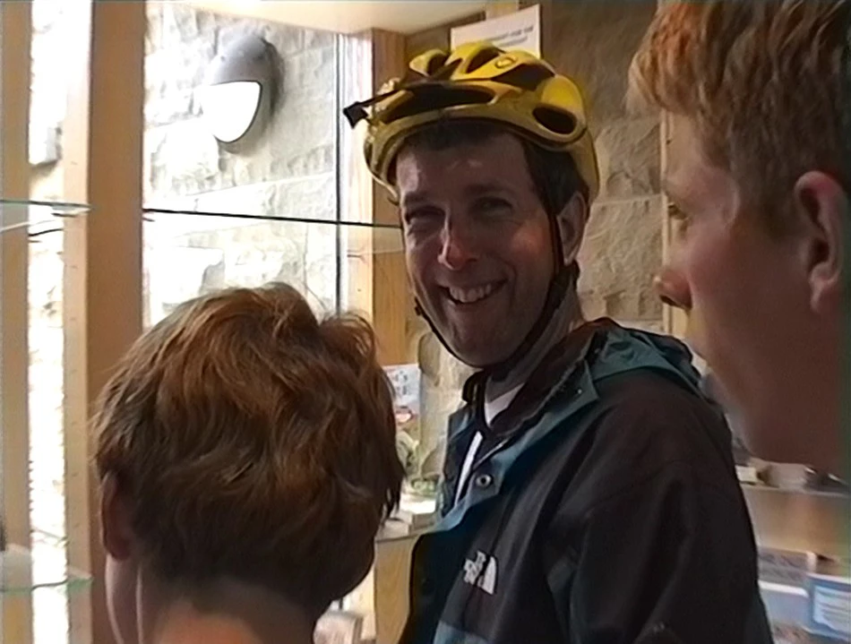 Michael, caught unawares by Oliver, in the Dales Countryside Museum, Hawes.
