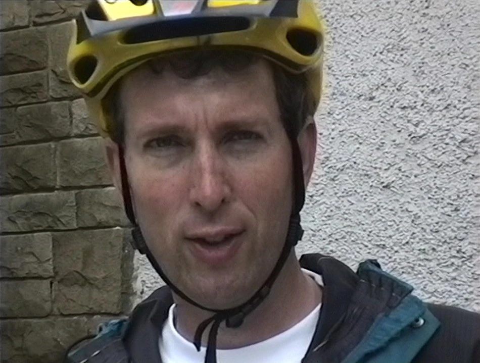 Michael, outside the Dales Countryside Museum, Hawes, spots Oliver with the camcorder.