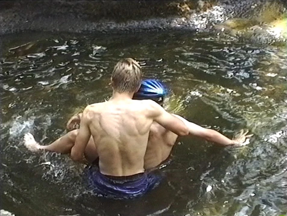 With Oliver's encouragement, Ryan 'helps' Gavin under the water at Cowgill.