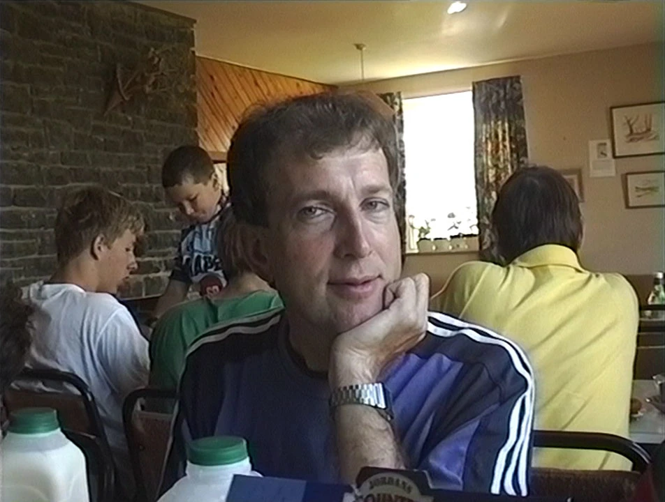 Michael trying to enjoy a peaceful breakfast at Langdon Beck Youth Hostel while Oliver films.
