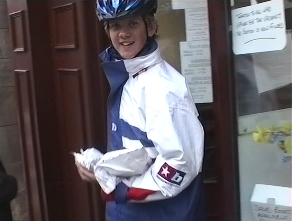 Gavin emerges from the Lowther Street bakery in Carlisle with lunch.